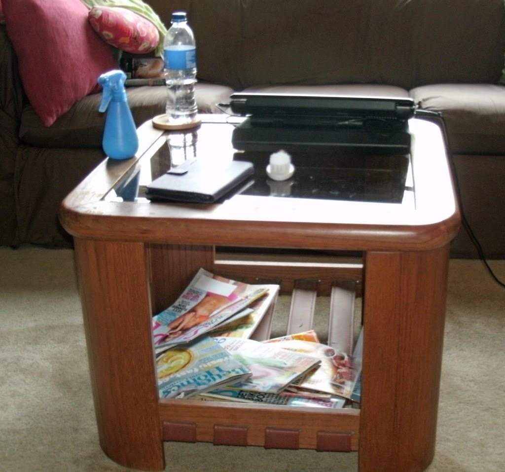 Here is the old end table that I was using as a coffee table as the coffee table is huge.
