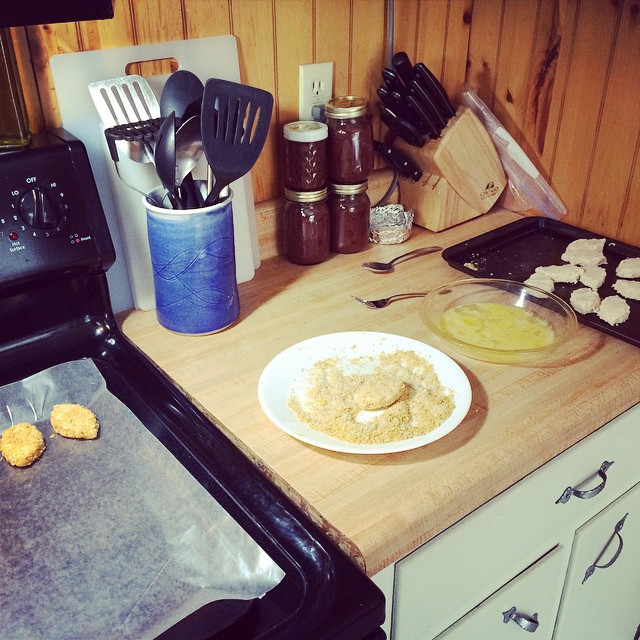 4. I made my own frozen chicken nuggets this month. Not the standard “chunk up chicken, bread it, and cook it” type either. I actually cooked chicken, pureed it up, formed them into shapes, breaded them, and froze them. It wasn’t as tedious as it sounds. It’s a great alternative to the frozen chicken nuggets you can get at the store but they are just as toddler-friendly.